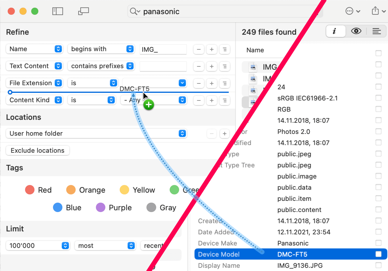When you spot such a file, drag it directly onto an existing criterion in the Refine section.